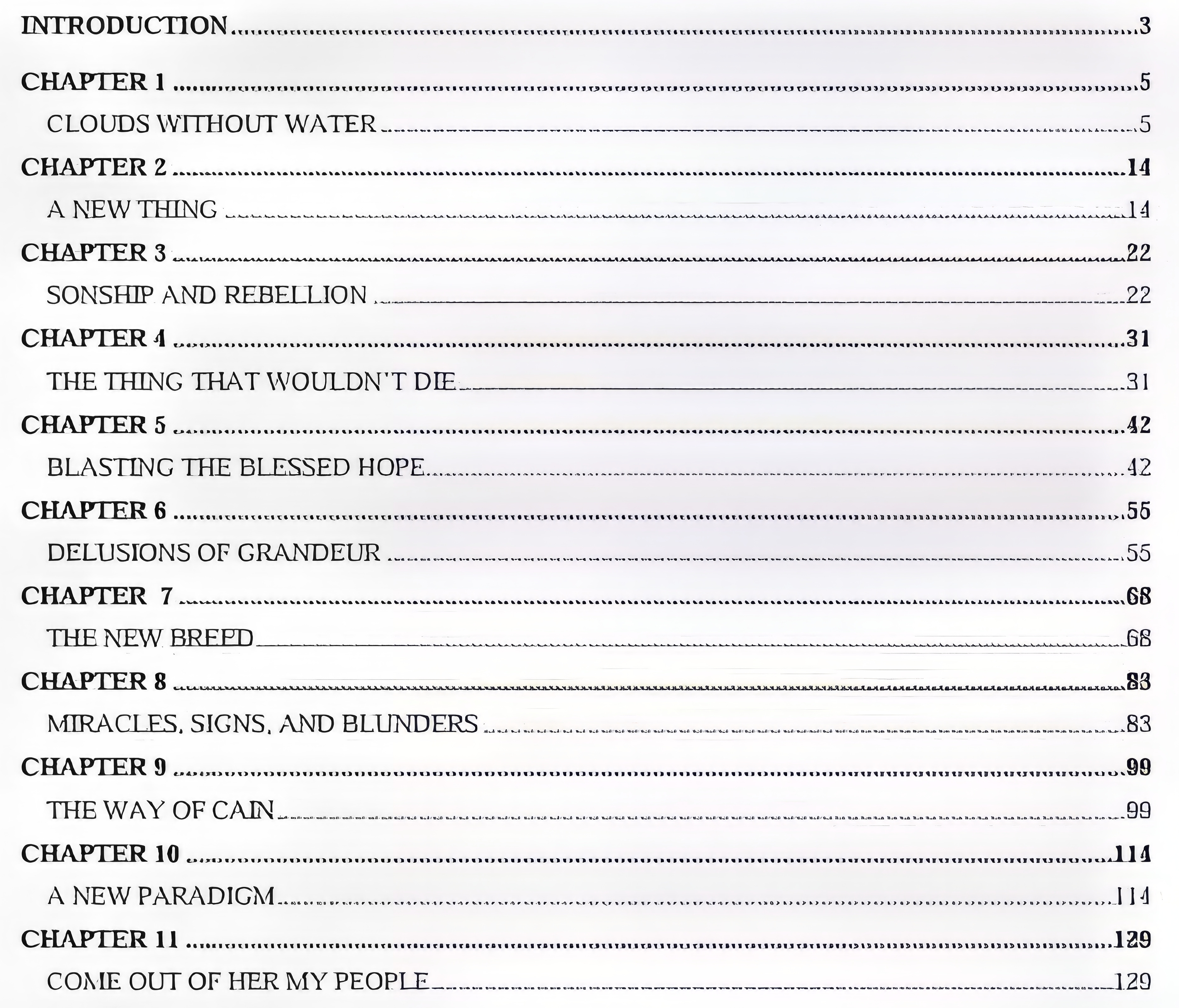 Jag kommer att försöka återge rörelsens läror och mål med deras egna ord. Jag vet att vissa kommer att anklaga mig för att vara orättvis eller för att citera dem ur sitt sammanhang. Andra kanske säger att jag saknar kärlek eller har en ”religiös ande”. Jag hade inte tänkt skriva den här boken, men efter många års studier har jag känt att Gud manar mig att göra det.